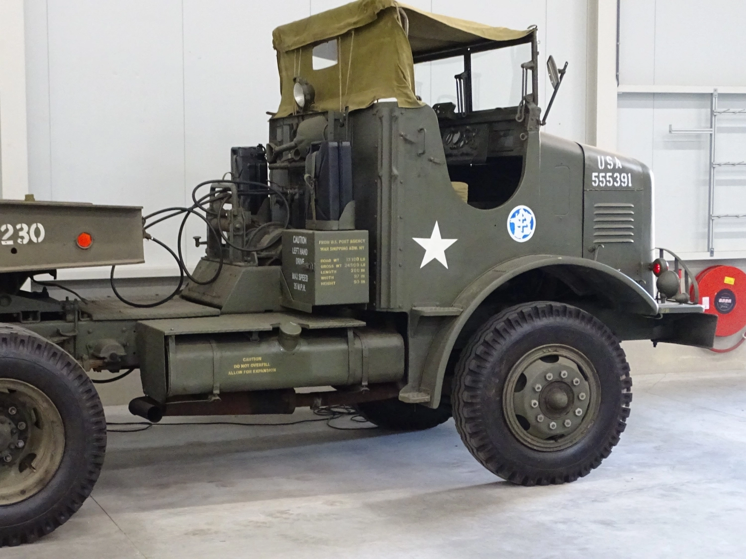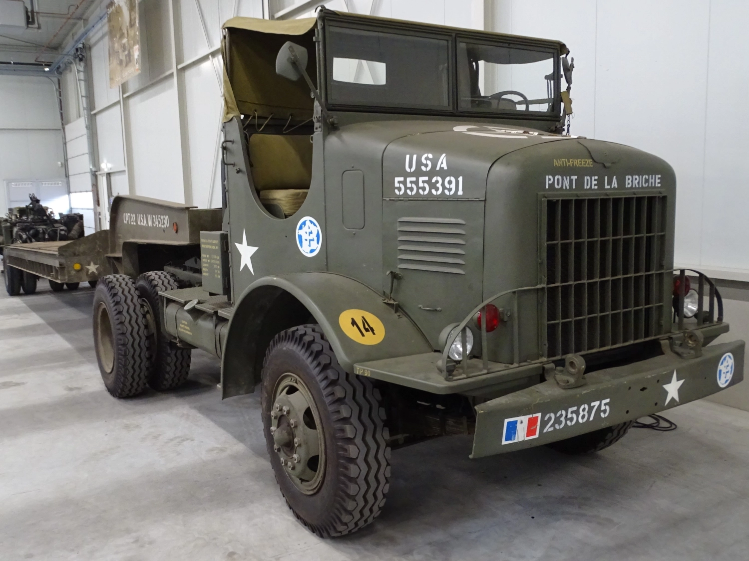Cette combinaison est une découverte remarquable, avec le M425 COE originaire de France et le CPT 22 des Pays-Bas. Dans les années 1980, le M425 a été directement libéré par l'armée et n'a jamais été utilisé à des fins civiles. Il a été restauré près de Versailles, en France, où le moteur d'origine Red Diamond a été remplacé par un Diesel Hispano Suiza. De plus, un treuil Tulsa d'époque WWII a été installé à l'arrière du plateau pour des opérations de remorquage en lien avec la remorque.