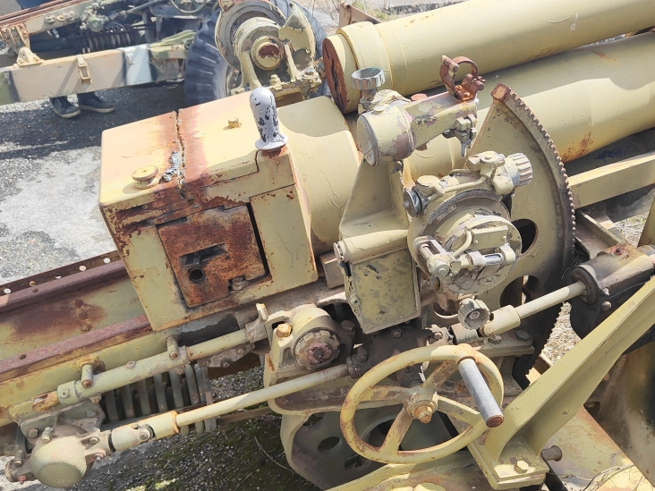 This 1942 howitzer is a direct army release, deactivated in full compliance with DOD Directive 5134. As you can see, this example is remarkably complete and provides an excellent basis for restoration. Depending on your budget and intended use, a full restoration, or at least a fresh repaint and a new set of tires, would really bring it back to life.