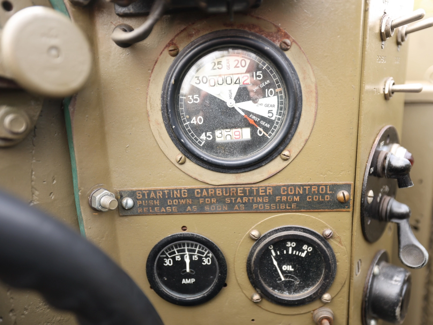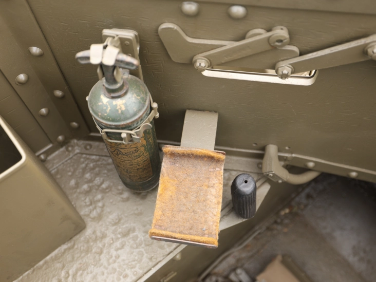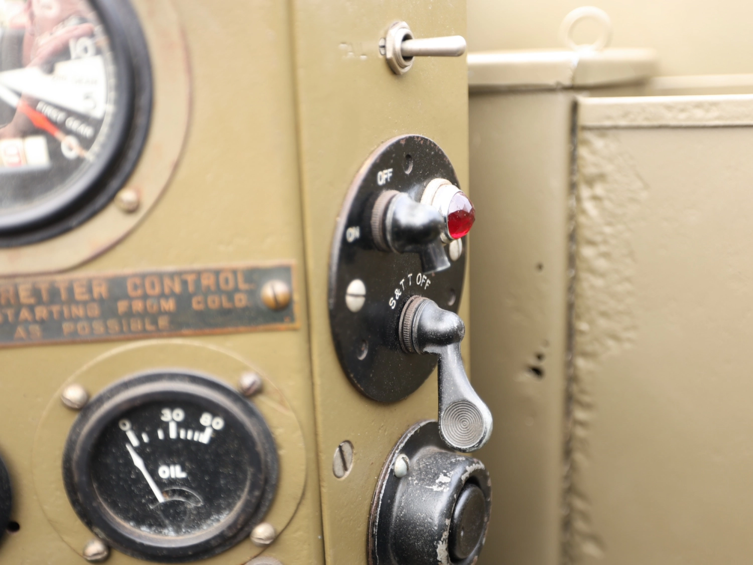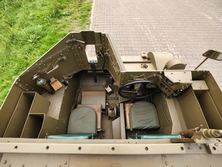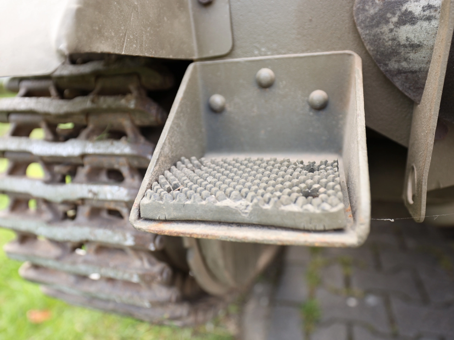 This early Mk I* Carrier originally came from Australia and has undergone a complete restoration. The vehicle was restored using original armor plates and has been converted to a reliable 12-volt electrical system. Many original stowage boxes and some newly manufactured. It is fitted with new NOS road wheels and sprockets, while the fuel tanks and exhaust system have been newly, but period correct, fabricated in stainless steel. Also the tracks are in good condition. Technically, the Carrier is in excellent mechanical condition and performs very well.