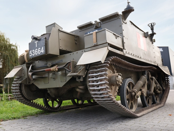 +31 6 518 22 502 ivosr.rigter@tracksandtrade.comThis is a beautiful early Canadian Mk I* Carrier, a rare example of the first production type that is rarely offered for sale. Among all Carrier variants, this early model will stand out during commemorations and reenactment events. Although it is an older restoration, the vehicle presents itself beautifully. It runs and steers very well and is exceptionally well equipped, featuring a no. 19 wireless set and various period accessories.