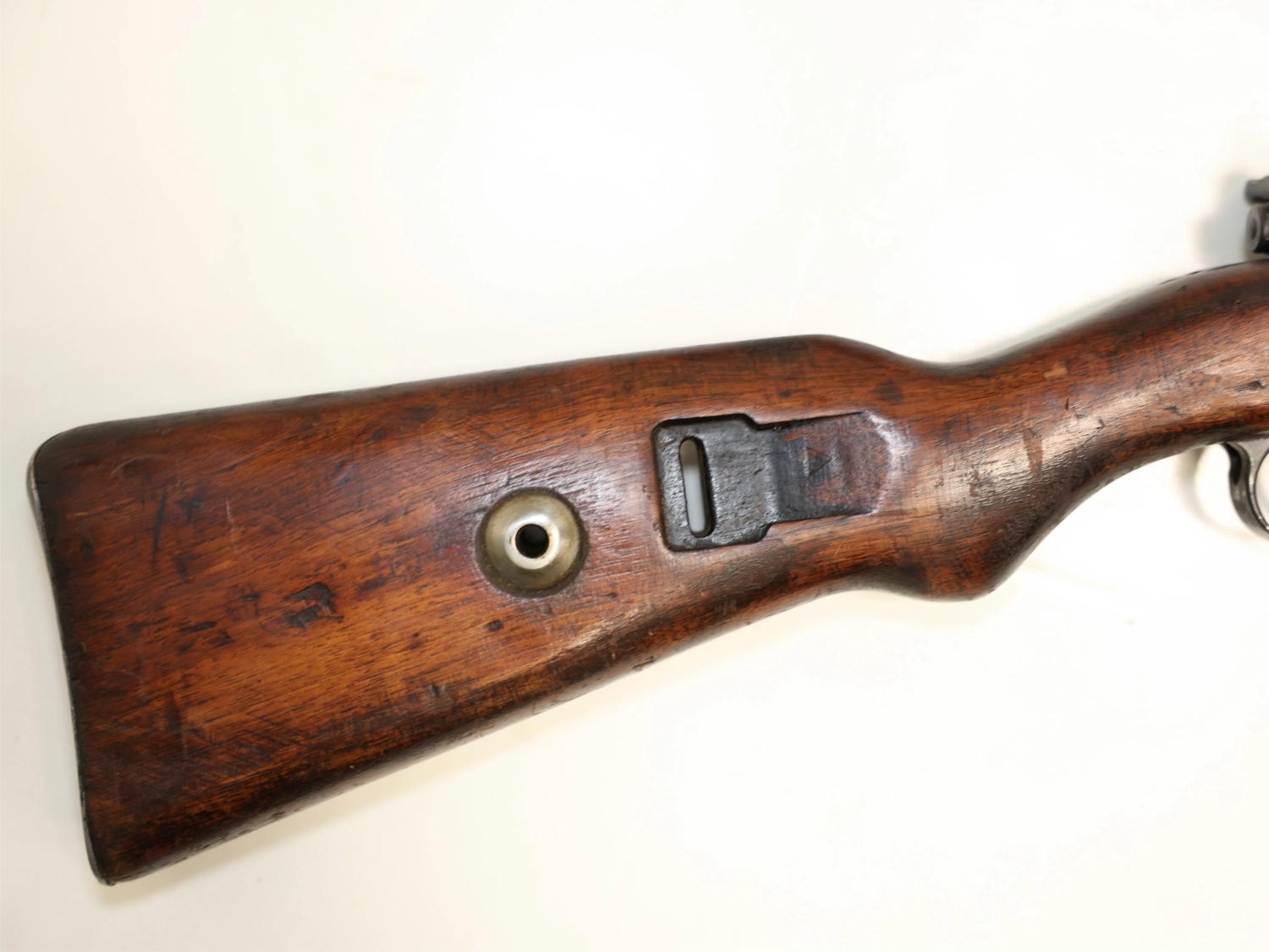 The Mauser Karabiner 98k, often referred to simply as the Kar98k, was adopted by the German Wehrmacht in 1935 as its standard service rifle. Derived from the famous Mauser Gewehr 98, it retained the strong and reliable Mauser bolt-action system but in a shorter and more practical carbine configuration; hence the designation Karabiner.