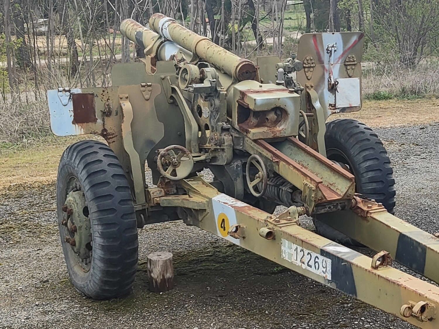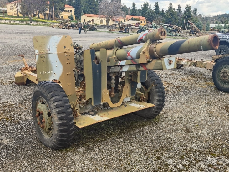 This 1955 howitzer is a direct army release, deactivated in full compliance with DOD Directive 5134. As you can see, this example is remarkably complete and provides an excellent basis for restoration. Depending on your budget and intended use, a full restoration, or at least a fresh repaint and a new set of tires, would really bring it back to life.